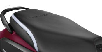 The raised nameplates on the side panels below the seat combine with the metallic finish chrome-S brand emblem in the front center to accent the model’s premium feel.