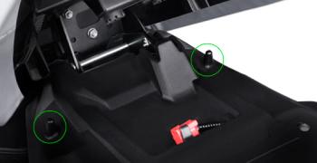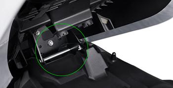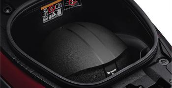 Two individual hooks at the front of the under-seat utility compartment make it easy to hang two helmets when parking by opening the seat, attaching the helmet straps, and then closing the seat
